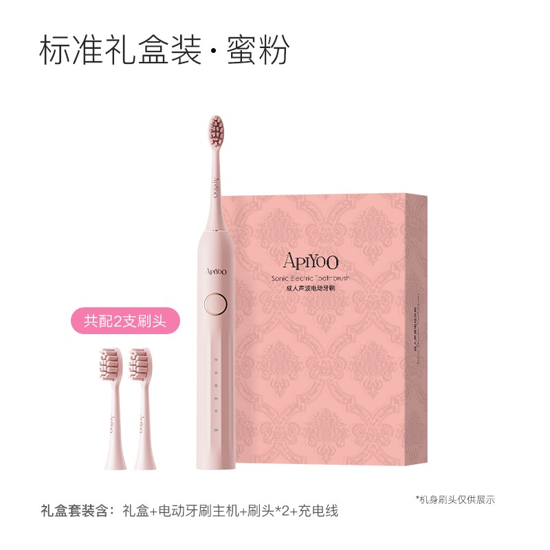 ApiYoo 艾优电动牙刷成人男女款自动超声波软毛情侣套装罗马柱礼盒装,专为追求品质生活的你打造,采用先进的超声波技术,深层清洁牙齿缝隙,温和呵护牙龈健康,配备蜜粉色机身与标准软毛刷头两只,适合各种口腔环境,情侣共享更添甜蜜,礼盒设计大方精致,是自用或送礼的理想选择,现在天猫促销仅需126.65元,原价199元,还可叠加满199减50优惠券,并享国家补贴立减22.35元,心动不如行动,喜欢的千万别错过