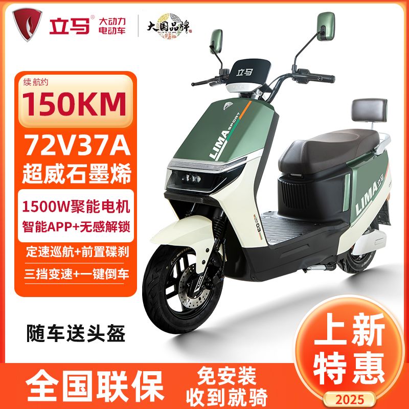 立马大动力电动车H5震撼来袭,专为追求速度与续航的你量身打造!搭载1500W超大功率电机,动力强劲起步迅捷,轻松应对各种路况,无论是城市通勤还是长途出行都能游刃有余。配备72V37A高性能电池组,续航能力大幅提升,一次充电畅行更远距离,告别里程焦虑。车身设计时尚大气,结构稳固耐用,舒适坐垫与灵敏刹车系统全面提升骑行体验。