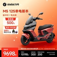 九号电动摩托车M5 125单电版本堪称高阶电摩革新者,采用锂电池,有脉冲红、电光绿两种时尚配色。这款电摩在性能与外观上都有出色表现。
