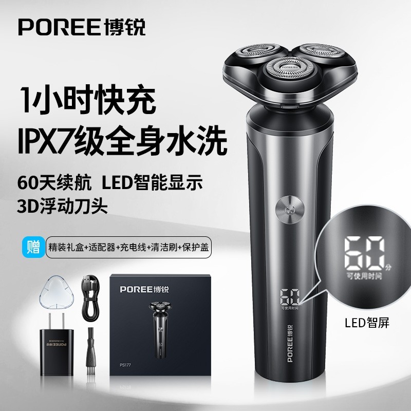 博锐 POREE FLYCO 飞科这款PS177礼盒装电动剃须刀,采用一小时快充技术,高效便捷,满足您日常剃须需求。